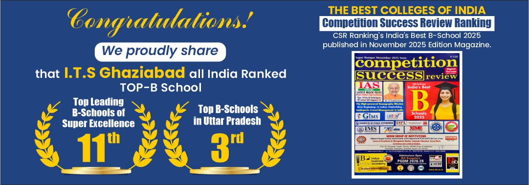 I.T.S School of Management, Mohan Nagar, Ghaziabad is a part of I.T.S Group, is a Premier Management Institute, established in the year 1995. The Institute conducts 2-year full-time PGDM (Post Graduate Diploma in Management) equivalent to MBA, duly recognized by AICTE and accredited by National Board of Accreditation, (NBA), and Association of Indian Universities (AIU). The two-year course of study focuses on all the domains of management ; it provides enrichment in the areas of Marketing, Finance, Operations, HRM, Information Technology and International Business.