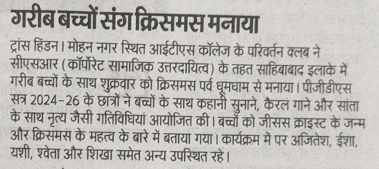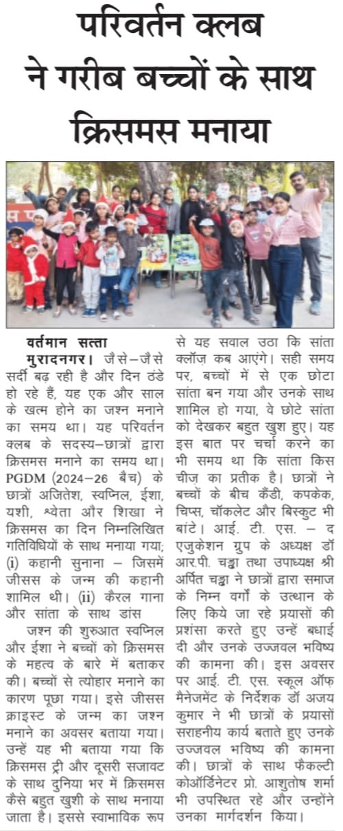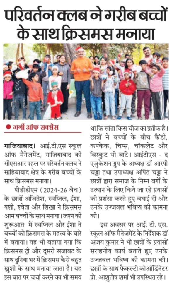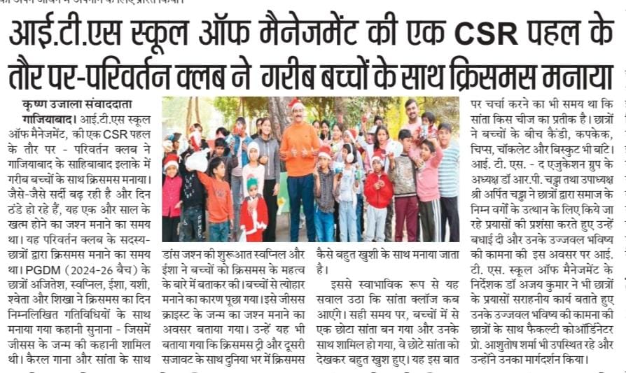 Parivartan Club's CSR initiative: Celebrated Christmas