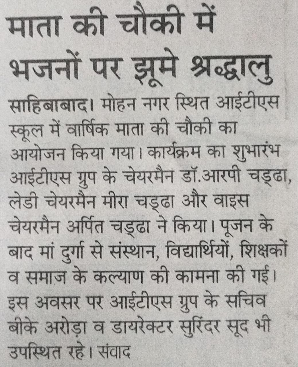 Mata ki Chowki celebrated @ITS, Mohan Nagar