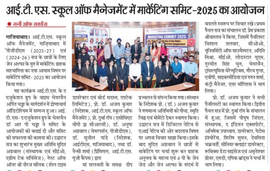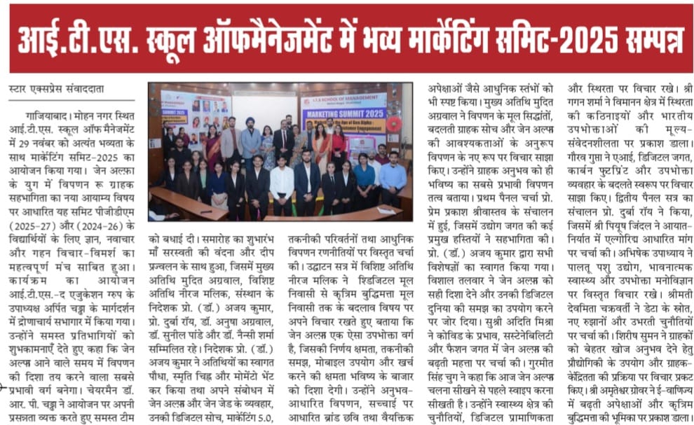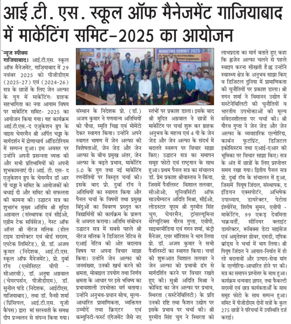 Marketing Summit-2025 (Marketing in the age of Gen Alpha – The New Frontiers of Customer Engagement Opportunities of Challenges) organized @ITS