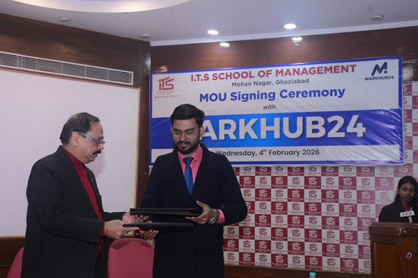 I.T.S School of Management, Ghaziabad, signed an MoU with MarkHub24 on February 4, 2026, to enhance students' practical exposure and strategic thinking in marketing, branding, analytics, and management. The collaboration will offer industry- oriented training, case studies, masterclasses, and mentorship.