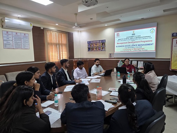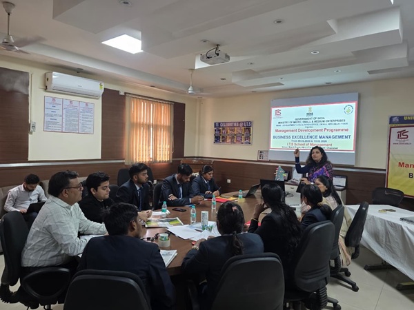 I.T.S School of Management with the support of MSME DFO New Delhi organized MDP on Business Excellence Management, under the aegis of Ministry of MSME Govt of India during 09-02-2026 to 13-02-2026 with the objective of strengthening managerial, entrepreneurial, and strategic capabilities of participants. The programme was formally inaugurated by Shri D. S. Tomar, Deputy Director (MSME), and Shri Ravi Ranjan Saini, Assistant Director (MSME), and faculty from I.T.S School of Management, Dr. Rajeev Johari, Dr. Anusha Agarwal, Prof. Durba Roy, Prof. Yachna Malhotra, Dr. Richa N Agarwal, Prof. Ashutosh Sharma and participants.