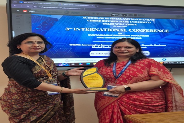 Dr. Anusha Agarwal, Professor in Finance at I.T.S School of Management, Ghaziabad, was invited by the School of Business, Christ University, Delhi–NCR Campus, to serve as a Session Chair at the 3rd International Conference on Sustainable Business Practices and Innovative Models, held on March 10–11, 2026, at the university campus in Delhi–NCR, India.