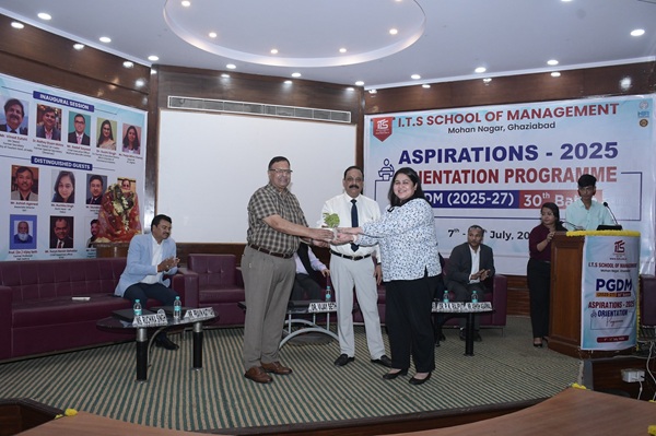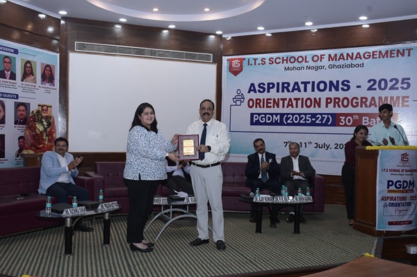 I.T.S School of Management, Mohan Nagar, Ghaziabad organized the Inaugural Ceremony of Aspirations 2025 on 8th July 2025 to welcome the 30th PGDM Batch (2025–27). Dr. Ajay Kumar, Director, I.T.S School of Management spoke about the institute’s legacy of academic excellence, strong placement record, and a value-based ecosystem. Dr. Anusha Agarwal, Chairperson PGDM, shared an overview of the orientation schedule and encouraged students to participate actively.