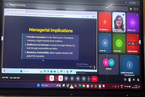 The presentation focused on advancements in supply chain decision-making using intuitionistic fuzzy methods and was followed by an engaging and interactive question-and-answer session that encouraged meaningful academic discussion among participants.