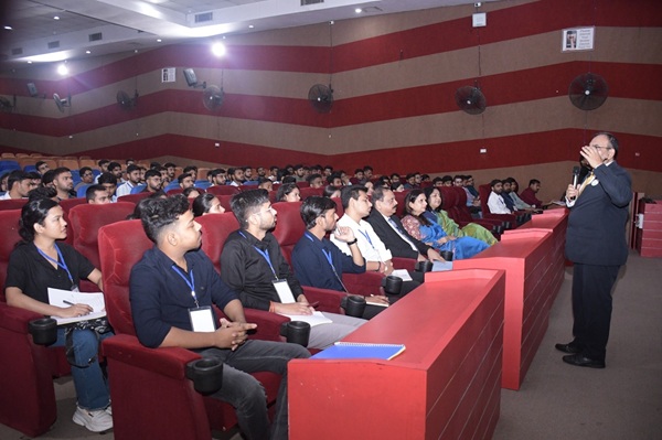 Dr. Radhey Shyam Mishra, IAS Retd., UP Cadre and Former Special Secretary, Revenue, Government of Uttar Pradesh, shared his mantra of purpose, people, and principles, inspiring students to lead with humility and ethics. Mr. Vinod Zutshi, IAS Retd. and Former Secretary, Ministry of Tourism, Government of India, highlighted core management principles and urged students to focus on communication, adaptability, ethics, and societal contribution.
