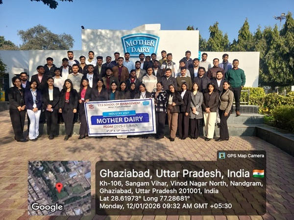 I.T.S School of Management, Ghaziabad, organized an industrial visit for the PGDM (2025-2027) Batch for Section A on 8/1/2026, Section B- 9/1/2026 and section C- 12/1/26 to the Mother Dairy Plant, New Delhi to provide practical exposure to large scale operations, supply chain management, quality control, and industry best practices, thereby strengthening the connection between classroom learning and real-world application.